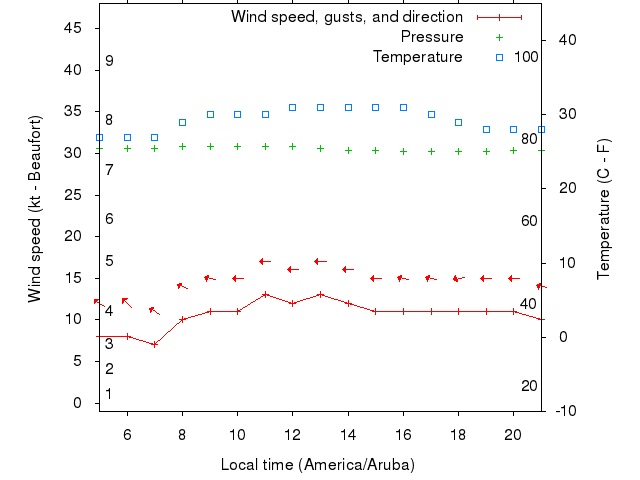 Dawn after 5:00; dusk before 21:00 local time (America/Aruba).