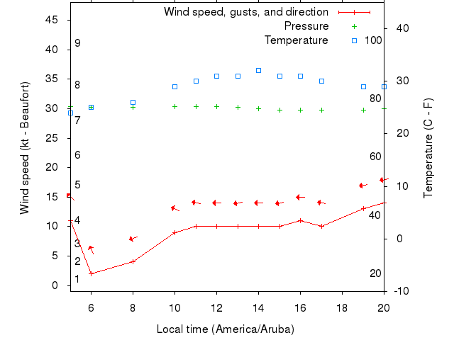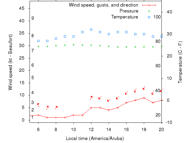 Dawn after 5:00; dusk before 20:00 local time (America/Aruba).