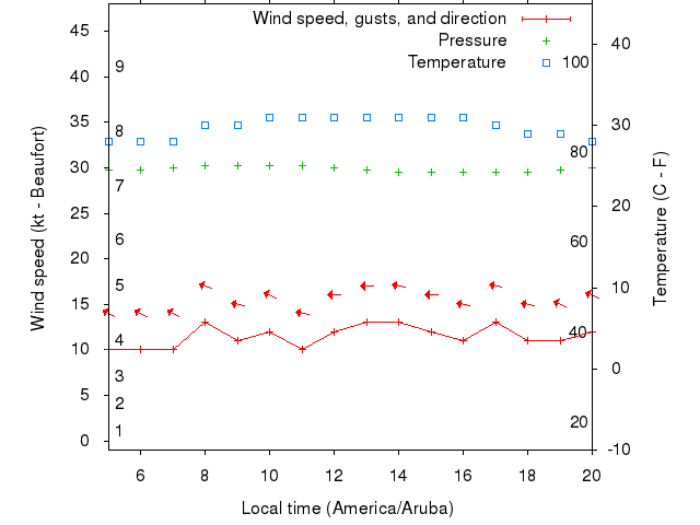 Dawn after 5:00; dusk before 20:00 local time (America/Aruba).