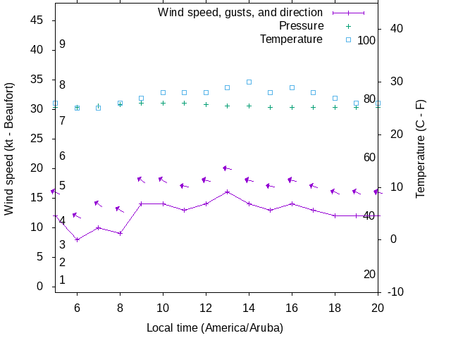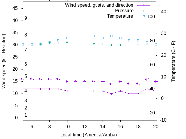 Dawn after 5:00; dusk before 20:00 local time (America/Aruba).