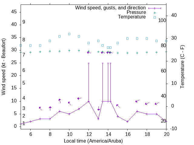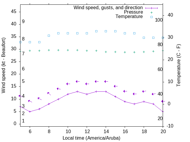 Dawn after 5:00; dusk before 20:00 local time (America/Aruba).