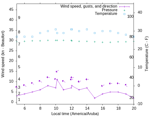 Dawn after 5:00; dusk before 20:00 local time (America/Aruba).