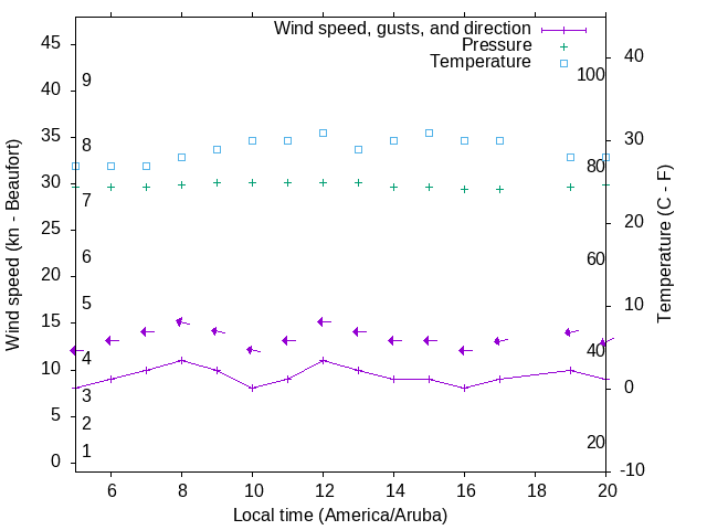 Dawn after 5:00; dusk before 20:00 local time (America/Aruba).